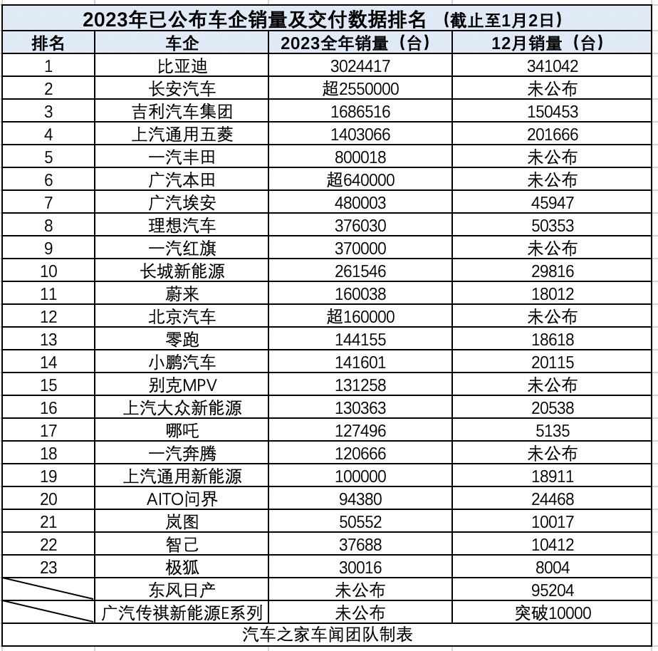 "ppt资源网站" 第一名不用猜 2023年车企全年销量排名