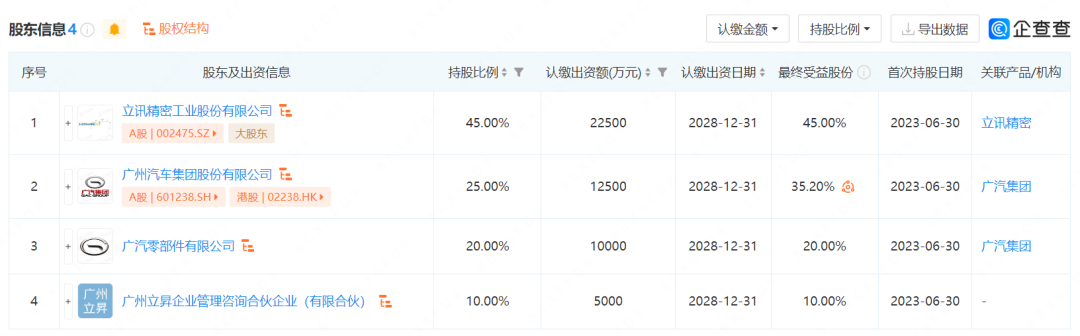 股东信息显示,该公司由立讯精密,广汽集团,广汽零部件有限公司,广州立昇企业管理咨询合伙企业(有限合伙)共同持股 9.1版本ppt,其中,立讯精密持股45%,广汽集团与广汽零部件合计持股45%。