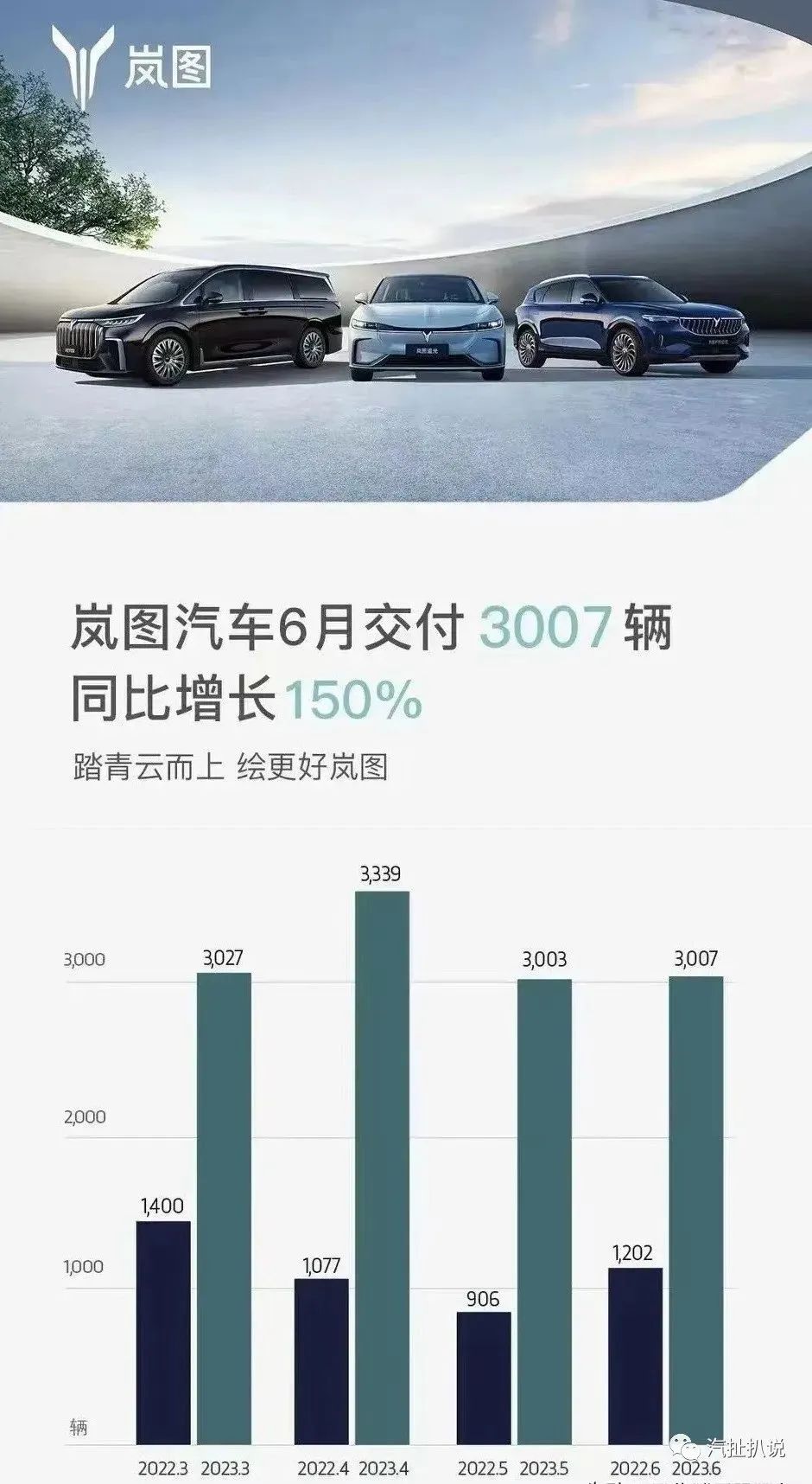 7月1日,岚图汽车公布了最新交付数据,2023年6月岚图交付新车3007辆,同比增长150% 樱花设计素材,岚图汽车自3月份以来连续四个月保持月销量超过3000辆。