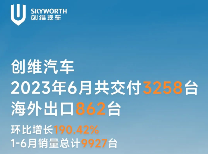 创维汽车6月共交付新车3,258辆,海外出口862辆,环比增长190 ppt资源网站,42%。1-6月销量总计9,927辆,相对于今年全年4万辆的目标,完成度为25%。。