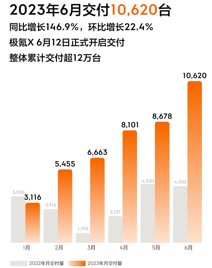 2023年6月交付10620台,同比增长146,9%,环比增长22 9.1樱花ppt网站,4%,整体累计交付超12万台。。