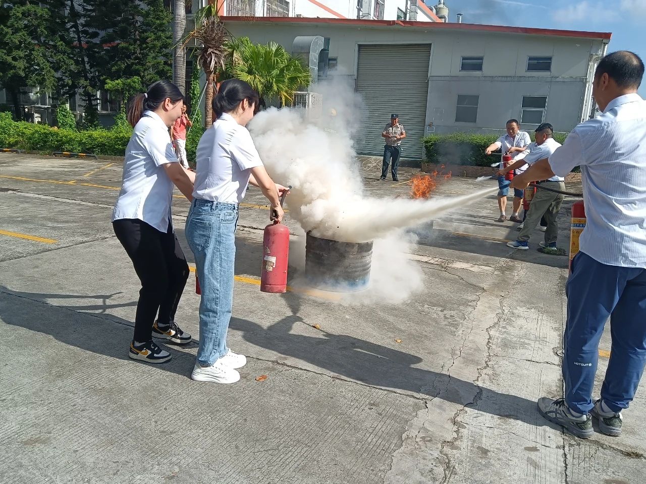 同时,宣讲员还现场讲解和演示灭火器,空气呼吸器,防火服,防毒面具等消防器材的性能及使用方法,并组织企业员工进行灭火器实操演练 樱花模板下载。