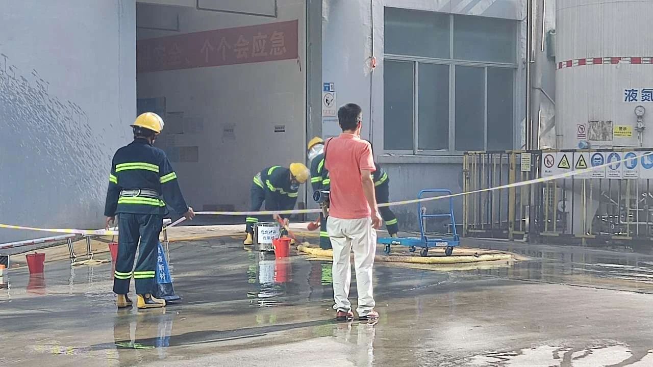 本次演练模拟厂区生产车间发生化学品泄露并着火 樱花ppt模板,厂区工人发现灾情后,立刻启动火灾应急预案,快速响应灭火救援和开展人员疏散,经过紧张有序的救援,化学品和火势得到及时扑救,演练取得了预期效果。